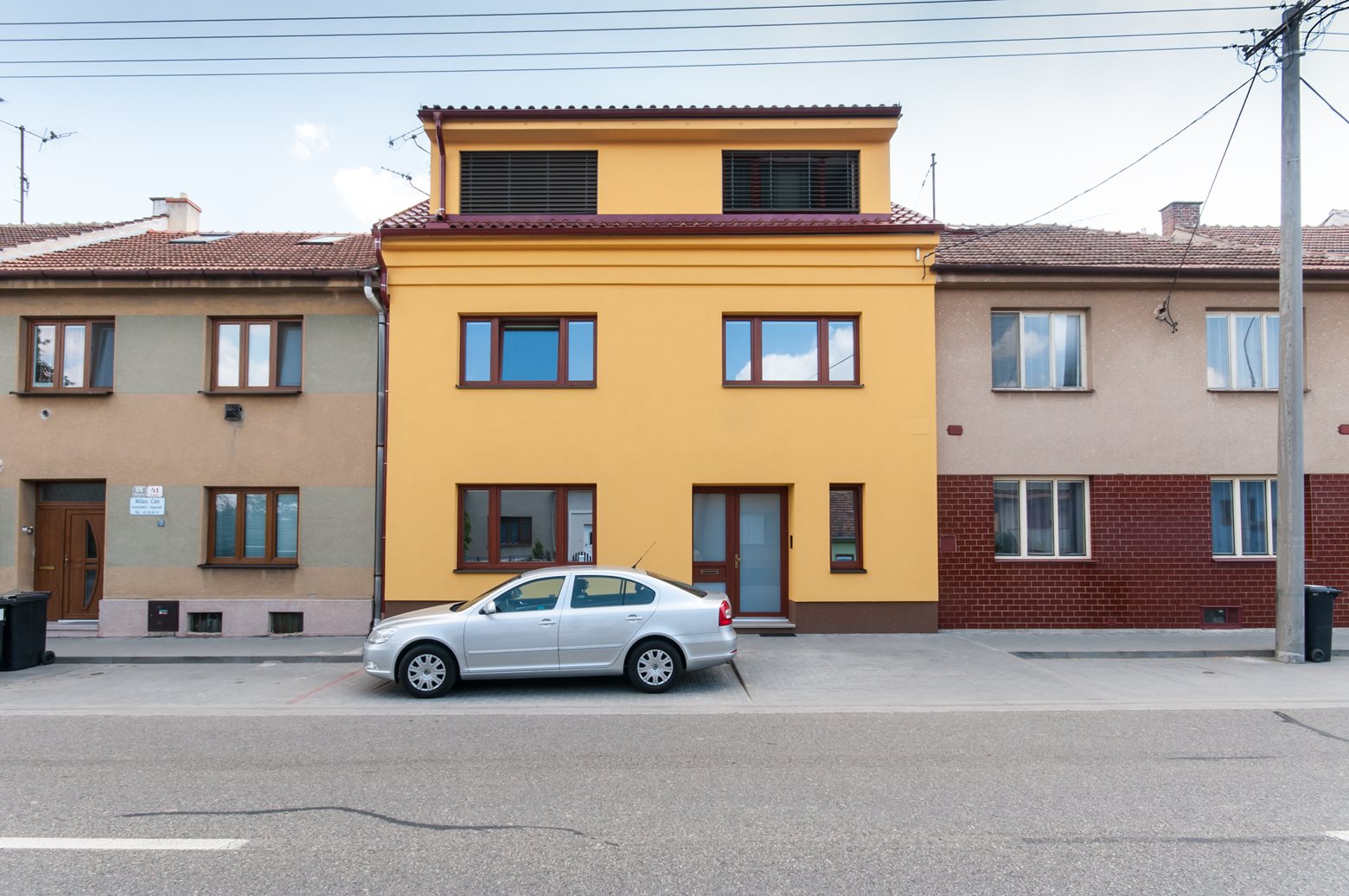 Řadový dům ze třicátých let minulého století prošel před několika lety rozsáhlou rekonstrukcí. Jeho majitelé si splnili sen o moderním domě, který však zvenčí plně respektuje ráz okolní zástavby. Dům je prosvětlen velkým množstvím oken a stojí v lokalitě zatížené hlukem. Bylo tedy třeba zvolit okna s těmi nejlepšími tepelnými i zvukově izolačními vlastnostmi.