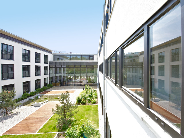Jednoduchá elegance v kombinaci s ušlechtilými materiály ve čtyřhvězdičkovém hotelu Fürstenfelder. Okna s úžasným designem a jemnou povrchovou strukturou dokonale zapadají do celkového stylu komplexu. Šedě zabarvené tělo profilu zároveň skvěle ladí s barvou Graphit Schwarz z kategorie barev Architecture Colors.